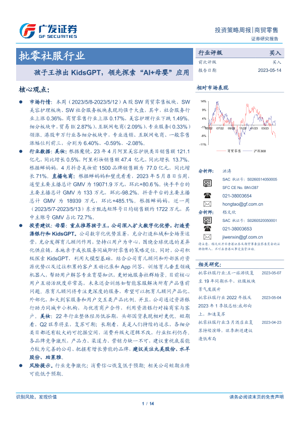 【广发证券】【20230514】批零社服行业:孩子王推出KidsGPT,领先探索“AI+母婴”应用-14页
