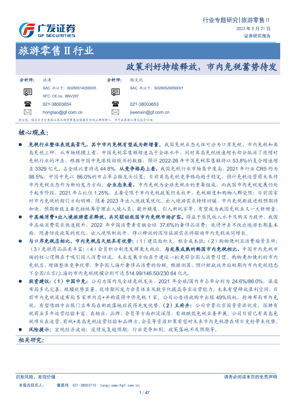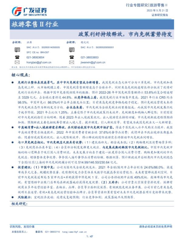 【广发证券】【20230521】旅游零售Ⅱ行业:政策利好持续释放,市内免税蓄势待发-47页