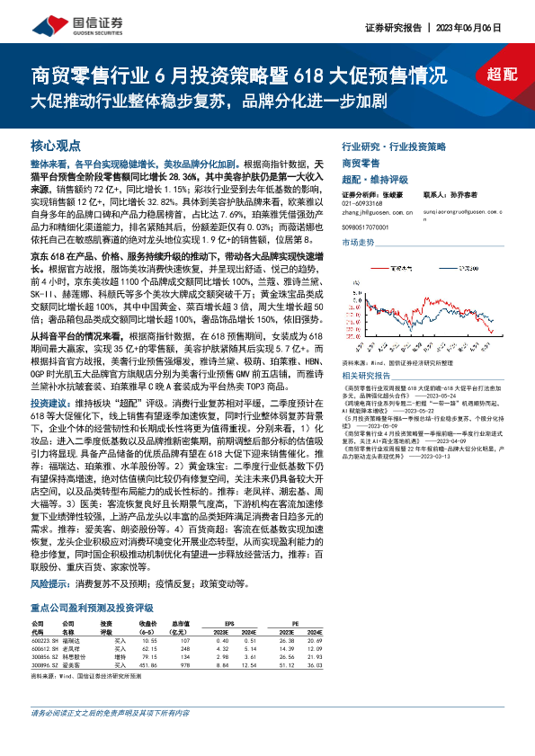618大促 品牌分化 商贸零售 投资策略 行业复苏