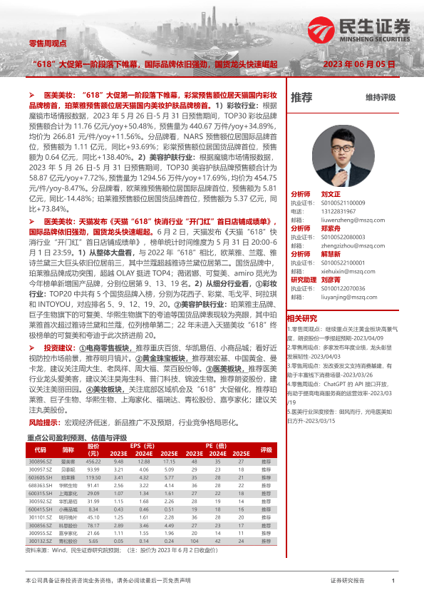 【民生证券】【20230605】零售周观点:“618”大促第一阶段落下帷幕,国际品牌依旧强劲,国货龙头快速崛起-18页