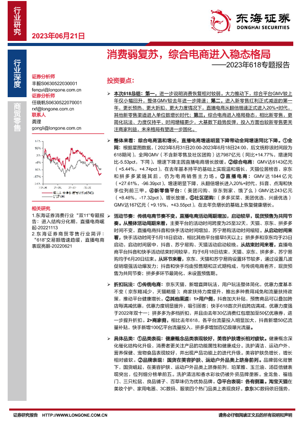【东海证券】【20230621】消费弱复苏,综合电商进入稳态格局-18页