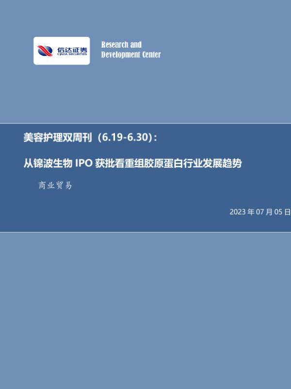 【信达证券】【20230705】从锦波生物IPO获批看重组胶原蛋白行业发展趋势-21页