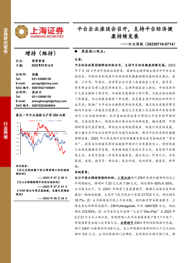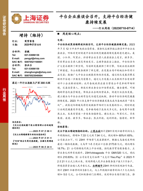 【上海证券】【20230716】商贸零售行业周报:平台企业座谈会召开,支持平台经济健康持续发展-16页