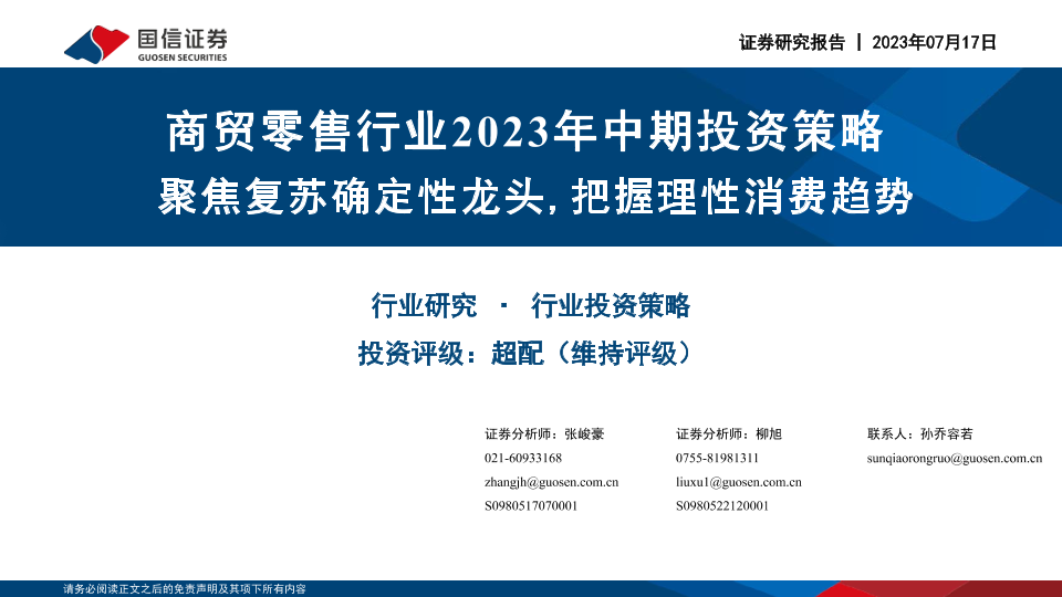 【国信证券】【20230717】商贸零售行业2023年中期投资策略:聚焦复苏确定性龙头,把握理性消费趋势-47页