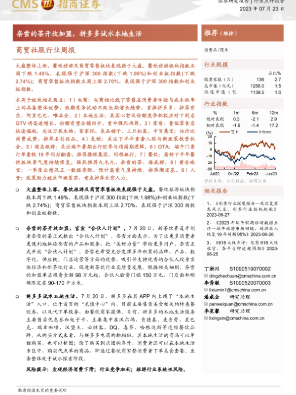 【海通证券】【20230723】商贸社服行业周报:奈雪的茶开放加盟,拼多多试水本地生活-10页