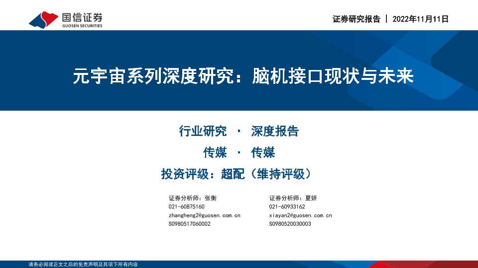 【国信证券】【20221111】传媒行业元宇宙系列深度研究:脑机接口现状与未来-39页