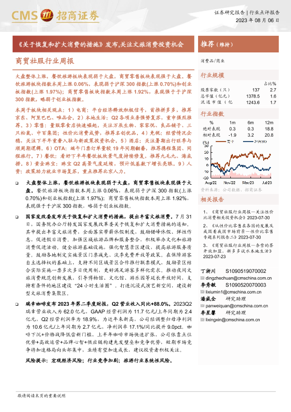 【海通证券】【20230806】商贸社服行业周报:关于恢复和扩大消费的措施发布,关注文旅消费投资机会-10页