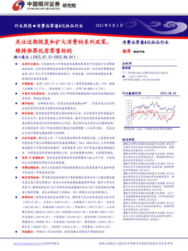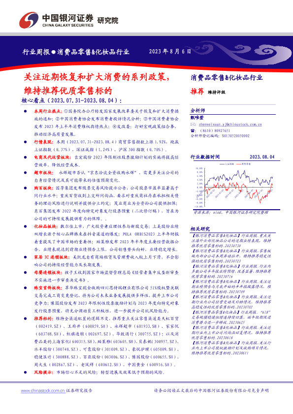 【银河证券】【20230806】消费品零售&化妆品行业周报:关注近期恢复和扩大消费的系列政策-33页
