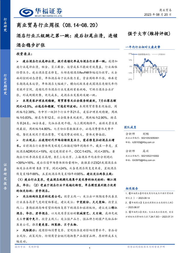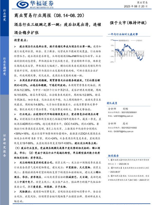 【华福证券】【20230820】商业贸易行业周报:酒店行业三级跳之第一跳:疫后扫尾出清,连锁酒企稳步扩张-18页