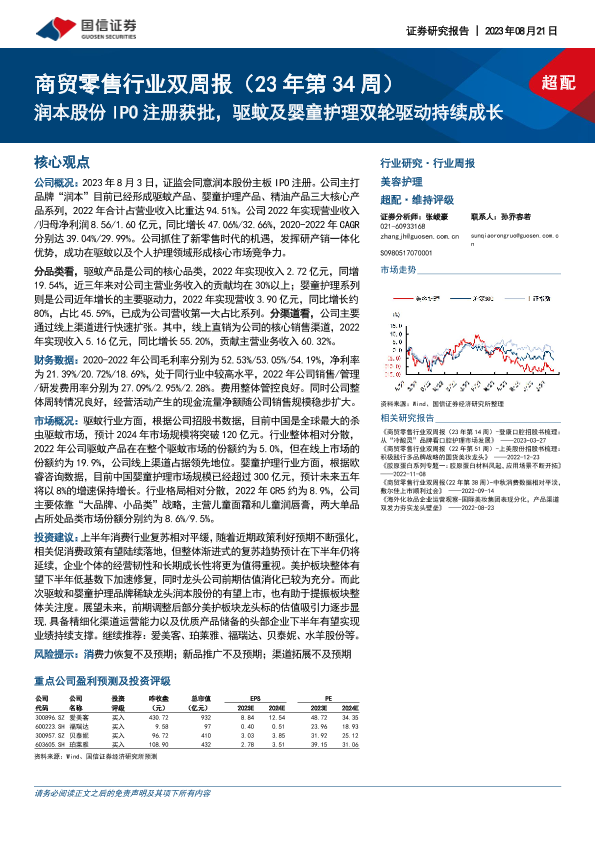 【国信证券】【20230821】商贸零售行业双周报:润本股份IPO注册获批,驱蚊及婴童护理双轮驱动持续成长-14页
