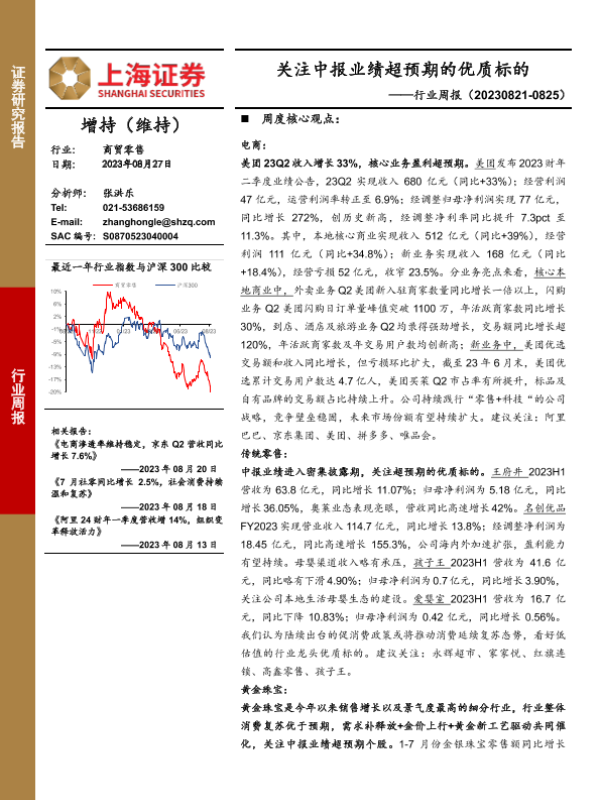 【上海证券】【20230827】商贸零售行业周报:关注中报业绩超预期的优质标的-15页