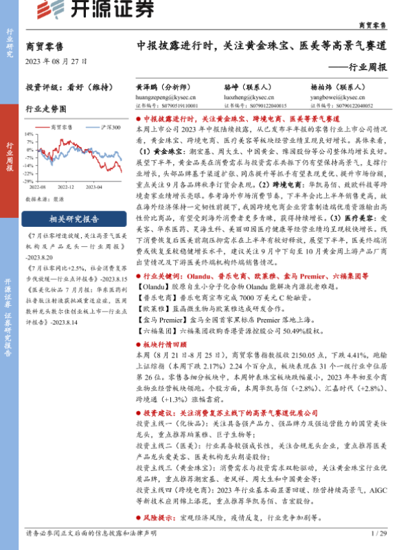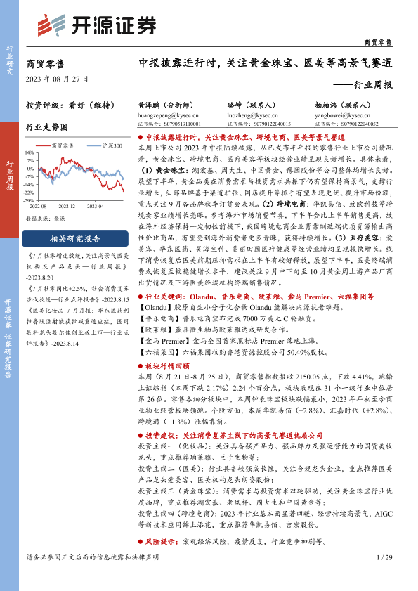 【开源证券】【20230827】商贸零售行业周报:中报披露进行时,关注黄金珠宝、医美等高景气赛道-29页