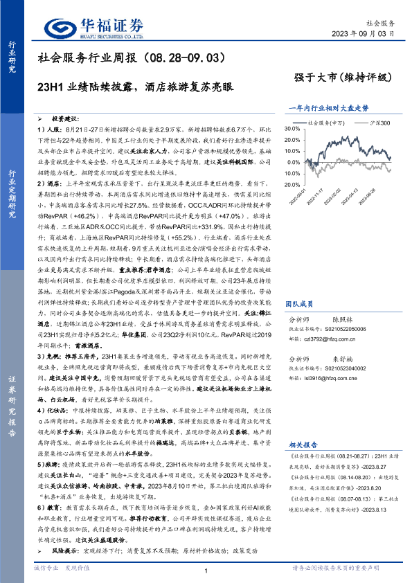 【华福证券】【20230903】社会服务行业周报:23H1业绩陆续披露,酒店旅游复苏亮眼-35页