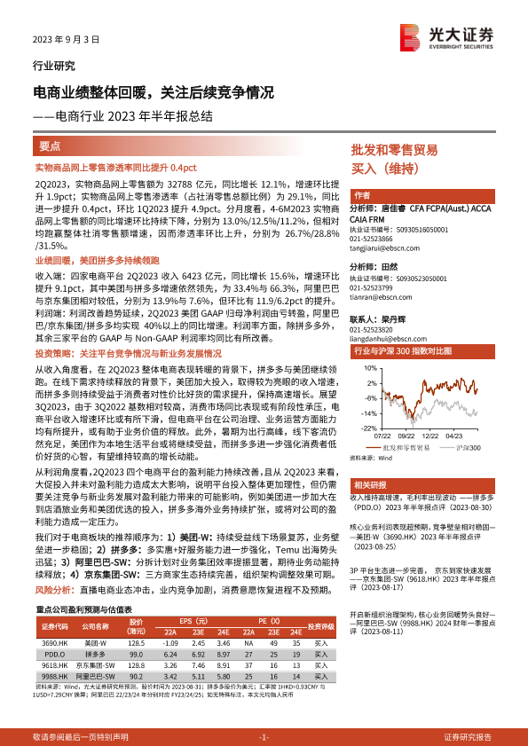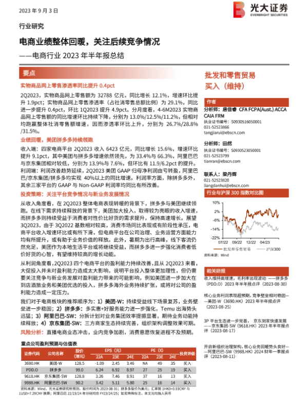 【光大证券】【20230903】电商行业2023年半年报总结:电商业绩整体回暖,关注后续竞争情况-19页
