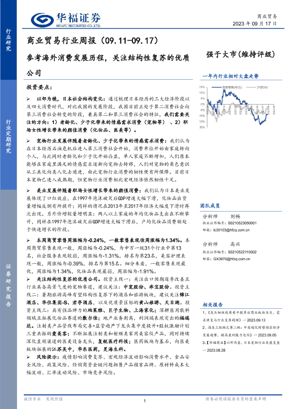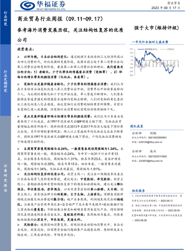 【华福证券】【20230917】商业贸易行业周报:参考海外消费发展历程,关注结构性复苏的优质公司-11页