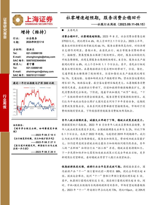 【上海证券】【20230917】社服行业周报:社零增速超预期,服务消费企稳回升-13页