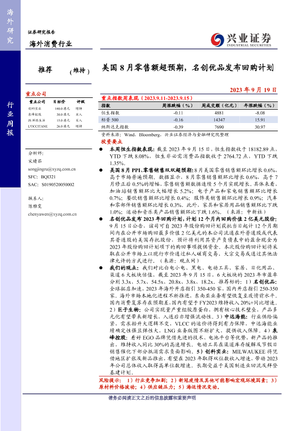 【兴业证券】【20230919】美国8月零售额超预期,名创优品发布回购计划-17页