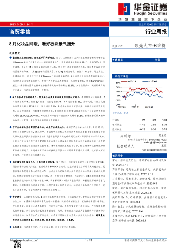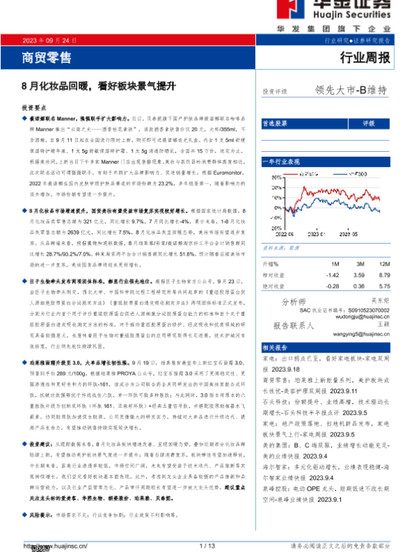 【华金证券】【20230924】8月化妆品回暖,看好板块景气提升-13页