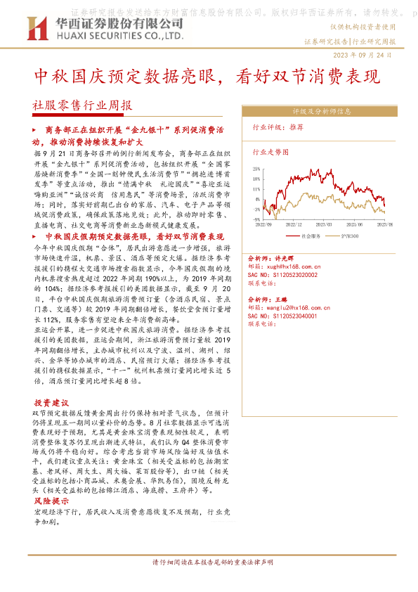 【华西证券】【20230924】社服零售行业周报:中秋国庆预定数据亮眼,看好双节消费表现-10页
