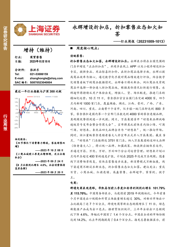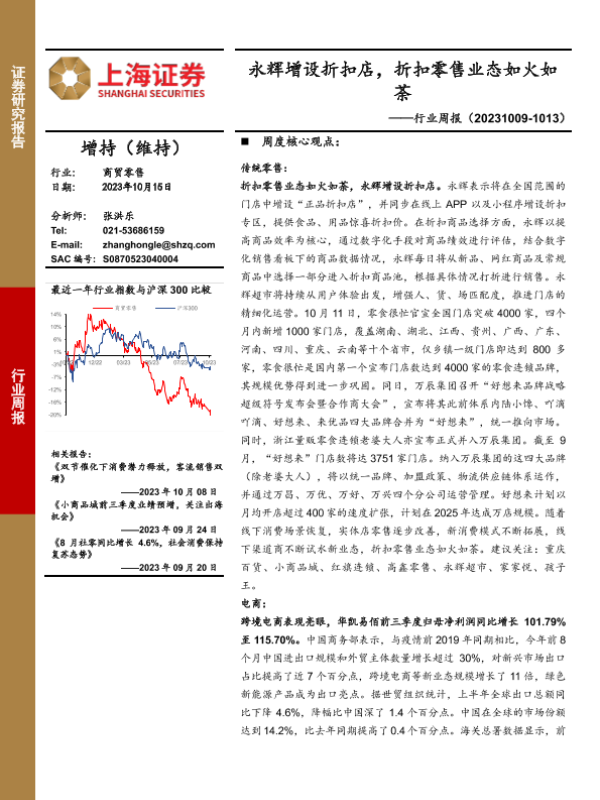 【上海证券】【20231015】商贸零售行业周报:永辉增设折扣店,折扣零售业态如火如荼-15页