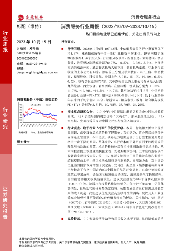 【东莞证券】【20231015】消费服务行业周报:热门目的地业绩已超疫情前,关注出境景气向上-11页