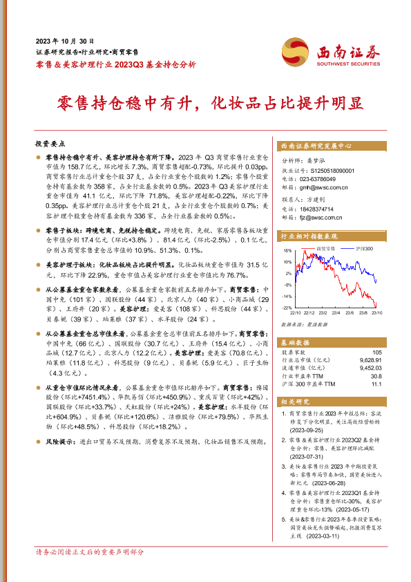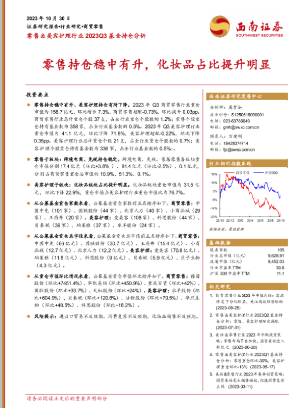 【西南证券】【20231030】零售&美容护理行业2023Q3基金持仓分析-14页
