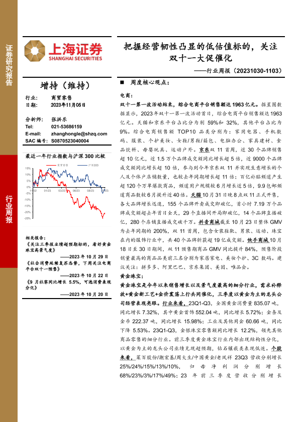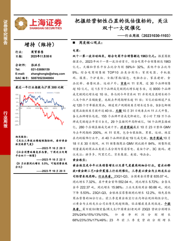 【上海证券】【20231105】把握经营韧性凸显的低估值标的,关注双十一大促催化-13页