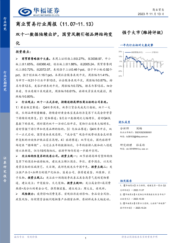 【华福证券】【20231113】商业贸易行业周报:双十一数据陆续出炉,国货风潮引领品牌结构变化-11页