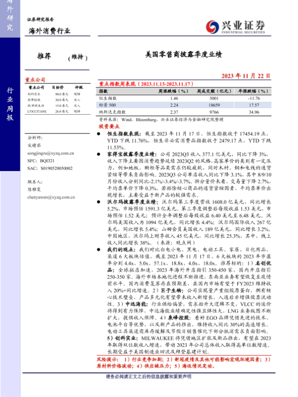【兴业证券】【20231122】美国零售商披露季度业绩-17页