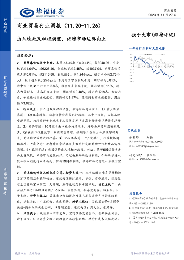 【华福证券】【20231127】商业贸易行业周报:出入境政策积极调整,旅游市场边际向上-10页