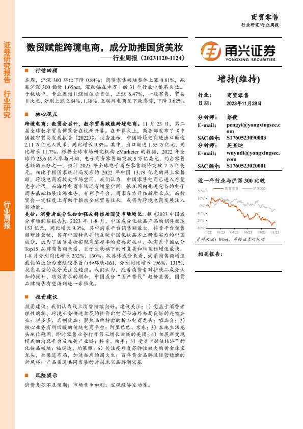 【甬兴证券】【20231128】商贸零售行业周报:数贸赋能跨境电商,成分助推国货美妆-12页