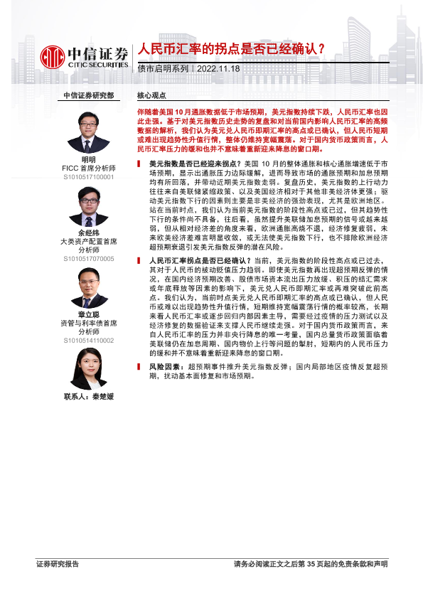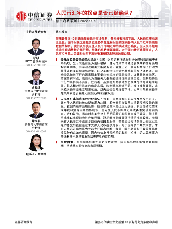 【中信证券】【20221118】债市启明系列:人民币汇率的拐点是否已经确认?-36页