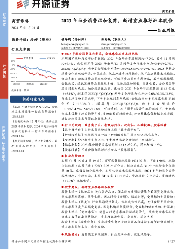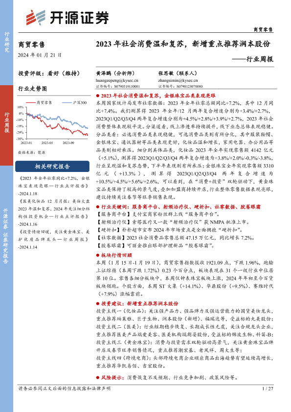 【开源证券】【20240121】2023年社会消费温和复苏,新增重点推荐润本股份-27页