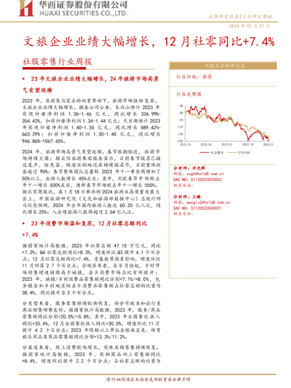 【华西证券】【20240121】社服零售行业周报:文旅企业业绩大幅增长,12月社零同比+7.4%-13页