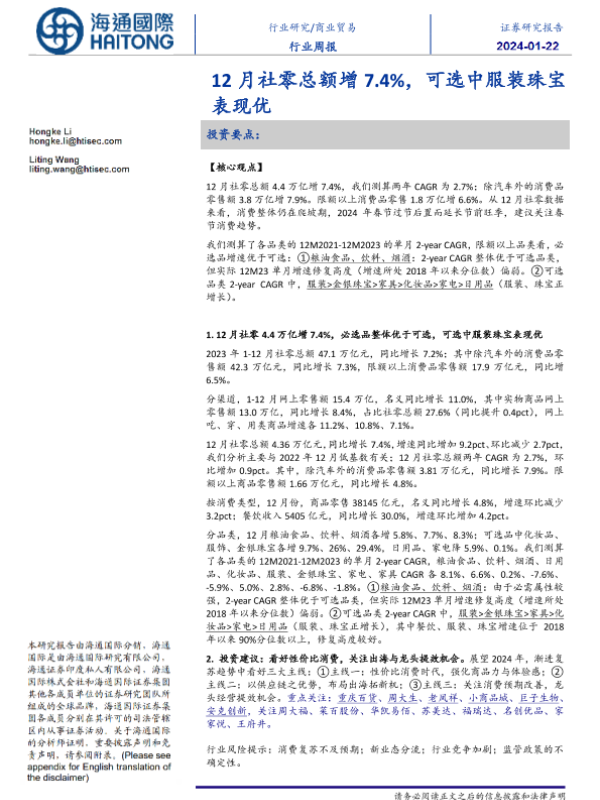 【海通国际】【20240121】12月社零总额增7.4%,可选中服装珠宝表现优-11页