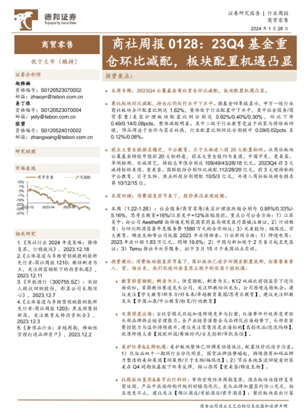 【德邦证券】【20240128】商社周报:23Q4基金重仓环比减配,板块配置机遇凸显-18页