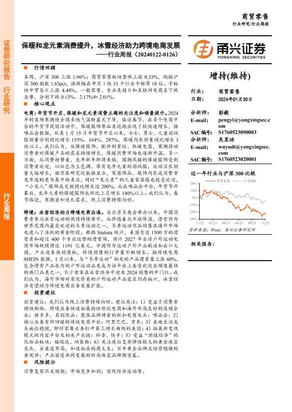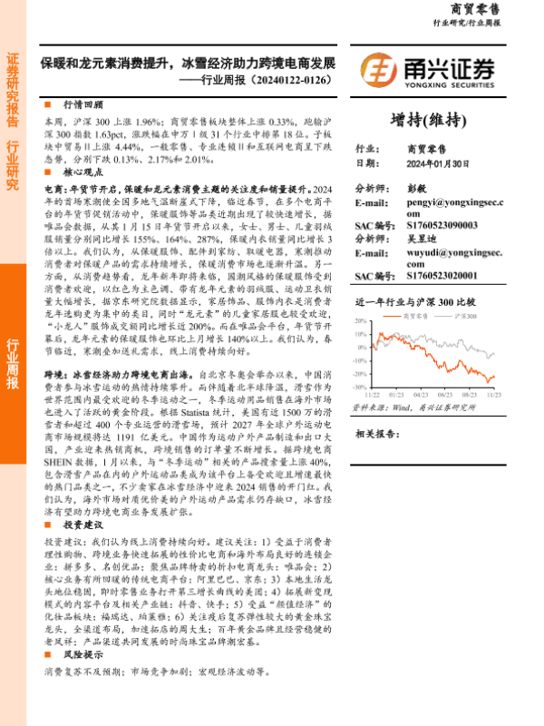【甬兴证券】【20240130】商贸零售行业周报:保暖和龙元素消费提升,冰雪经济助力跨境电商发展-12页