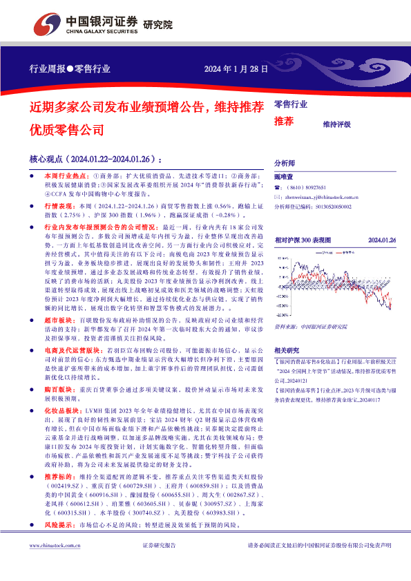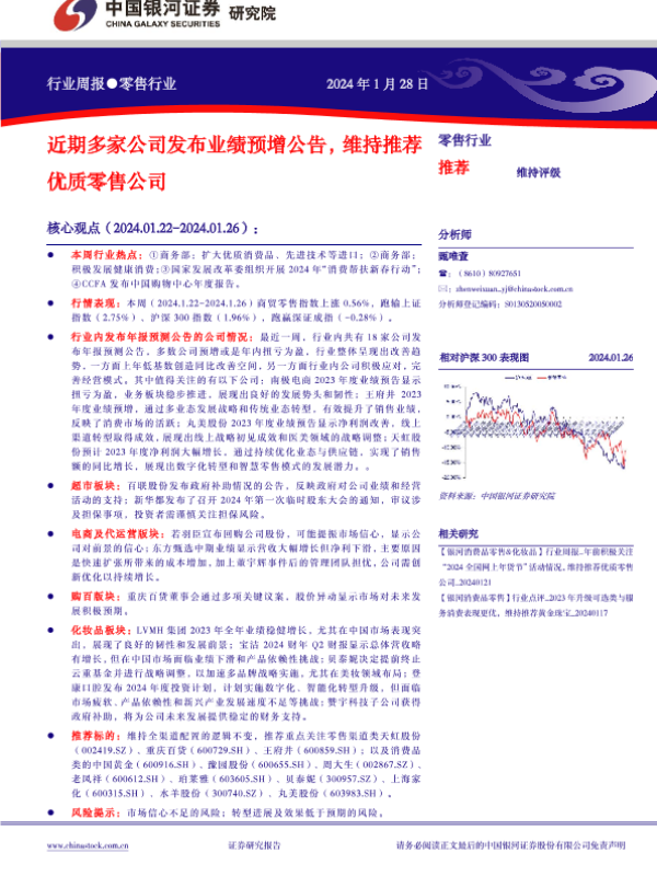 【银河证券】【20240128】近期多家公司发布业绩预增公告,维持推荐优质零售公司-35页