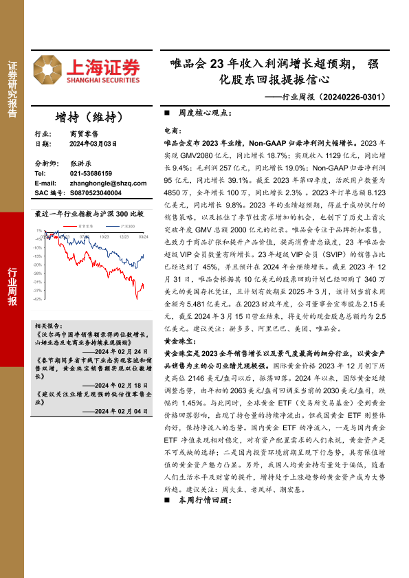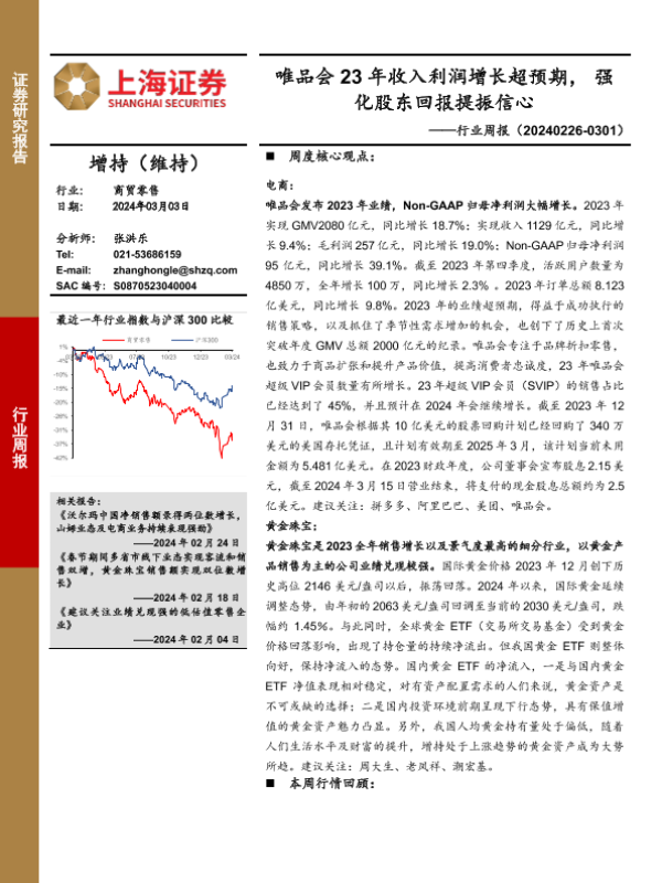 【上海证券】【20240303】商贸零售行业周报:唯品会23年收入利润增长超预期,强化股东回报提振信心-11页