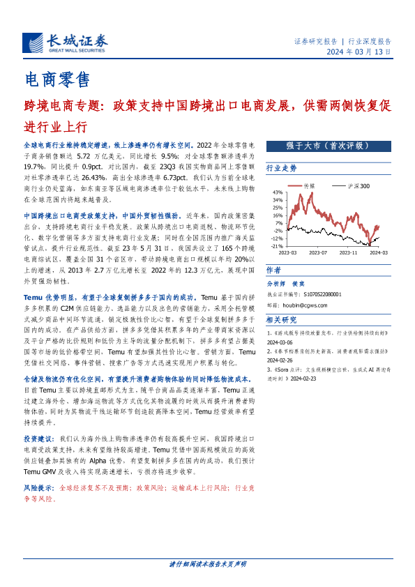 【长城证券】【20240313】跨境电商专题:政策支持中国跨境出口电商发展,供需两侧恢复促进行业上行-23页