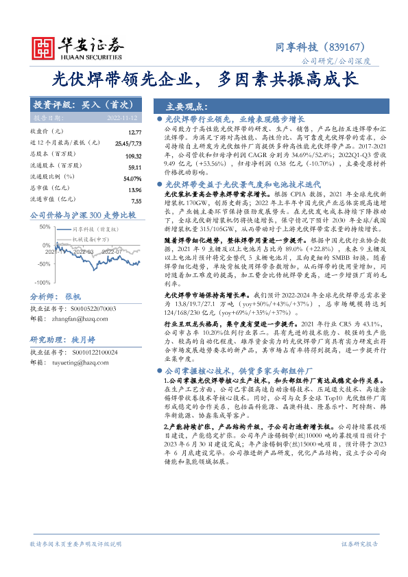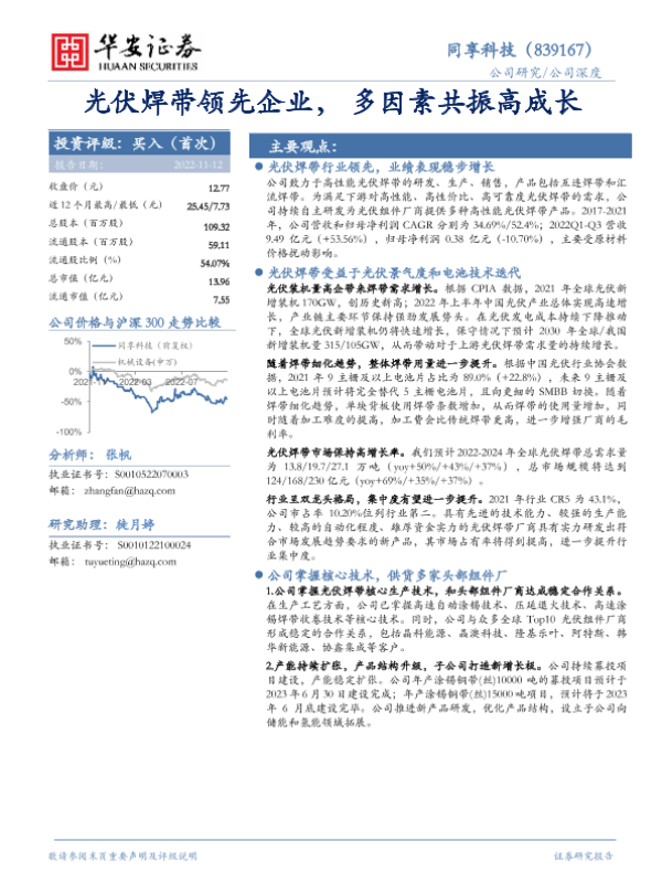 【华安证券】【20221112】光伏焊带领先企业,多因素共振高成长-23页