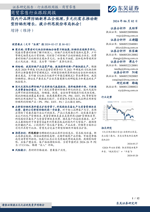 【东吴证券】【20240602】商贸零售行业跟踪周报:国内外品牌防晒新单品全梳理,多元化需求推动新型防晒剂增长-12页