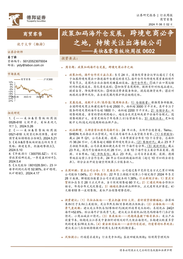 【德邦证券】【20240602】商贸零售行业周报:美妆&零售板块周报,政策加码海外仓发展-11页