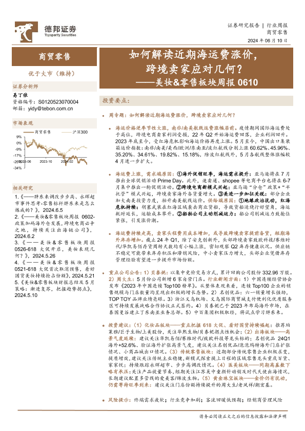 【德邦证券】【20240610】美妆&零售板块周报:如何解读近期海运费涨价,跨境卖家应对几何?-11页