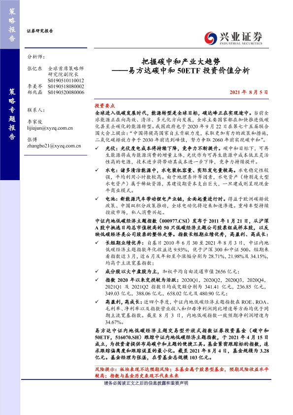 【兴业证券】【20210805】把握碳中和产业大趋势 ——易方达碳中和 50ETF投资价值分析-20页