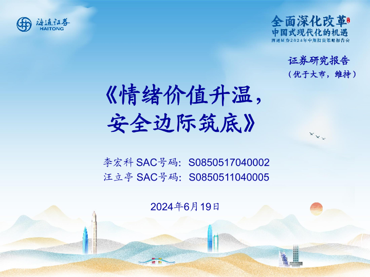 【海通证券】【20240619】情绪价值升温,安全边际筑底-27页