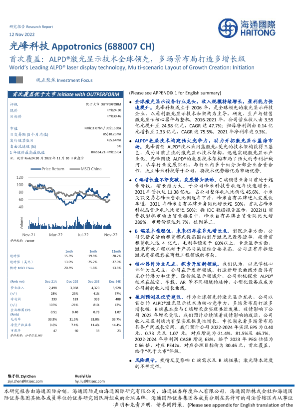 【海通国际】【20221112】光峰科技:ALPD激光显示技术全球领先,多场景布局打造多增长级-26页