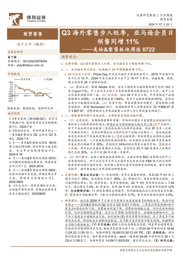 【德邦证券】【20240722】Q3海外零售步入旺季,亚马逊会员日销售同增11%-12页