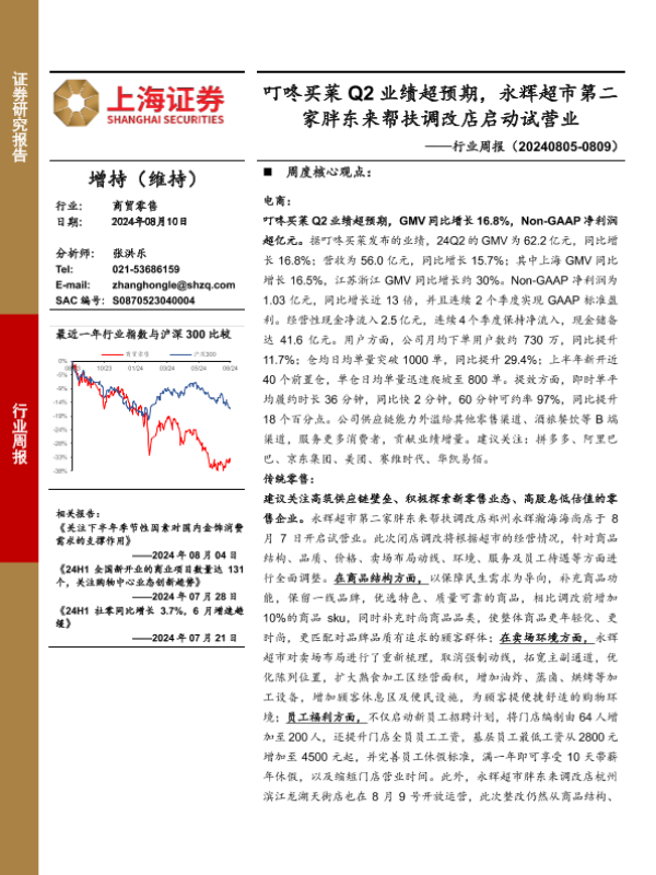 【上海证券】【20240810】商贸零售行业周报:叮咚买菜Q2业绩超预期,永辉超市第二家胖东来帮扶调改店启动试营业-11页
