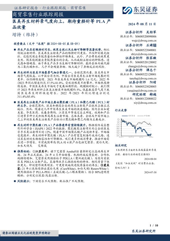 【东吴证券】【20240811】商贸零售行业跟踪周报:医美再生材料景气度向上,期待童颜针等PLA产品放量-10页